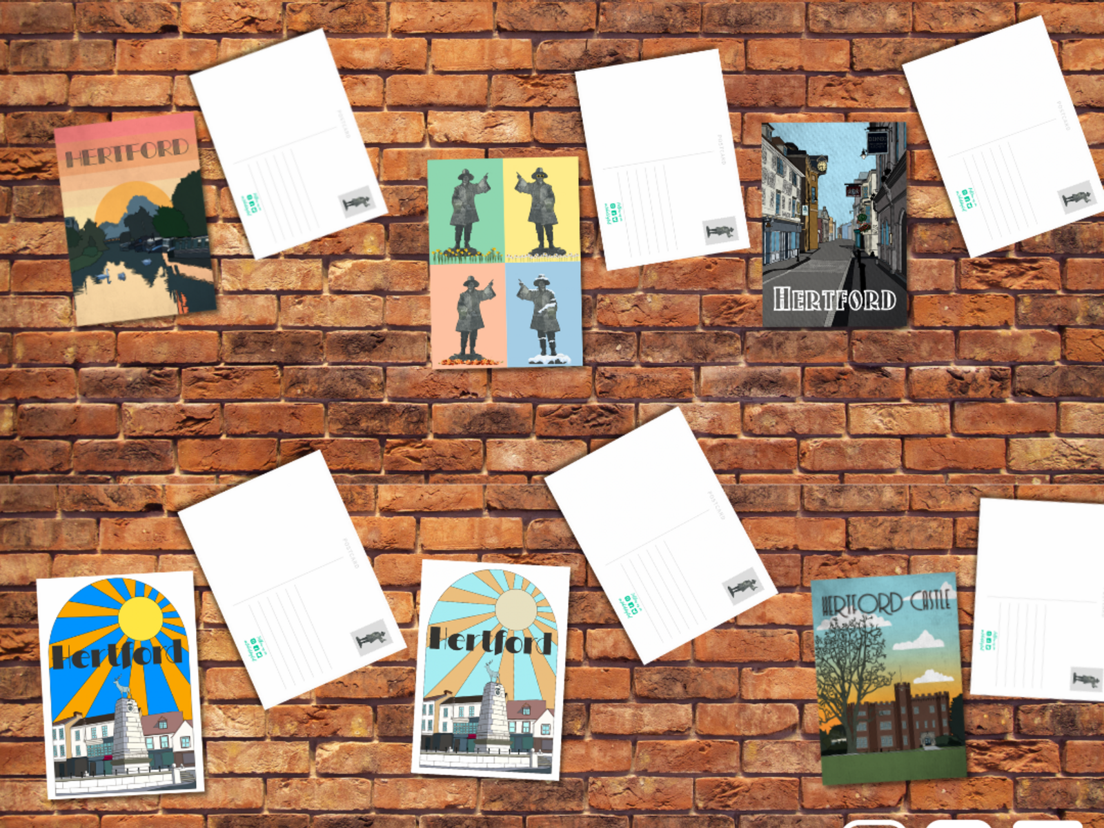 A6 Postcards featuring Joanna Boyce Design of Hertford Castle.